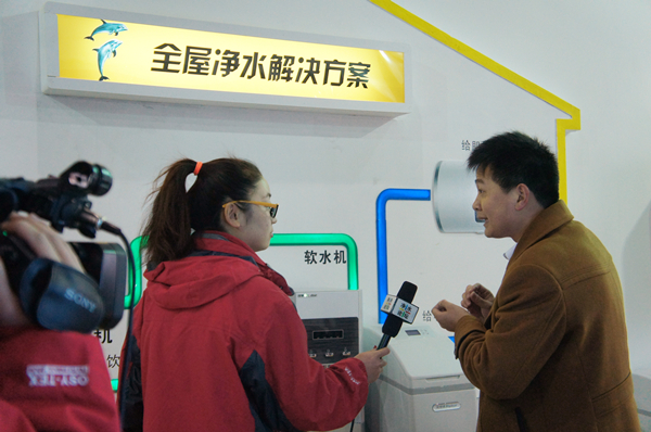 榮事達(dá)展廳內(nèi)客戶或駐足觀看、或拍照咨詢、或洽談合作,人氣非凡,絡(luò)繹不絕,成為全場最熱鬧的展廳之一。其卓越的產(chǎn)品和超高人氣也引來了眾多媒體的關(guān)注,華北大區(qū)總監(jiān)胡鋒接受了《凈水論壇》等記者的訪問,以全屋凈水方案為重點(diǎn),展示了榮事達(dá)的尖端技術(shù)水平和人性化飲水方案。
