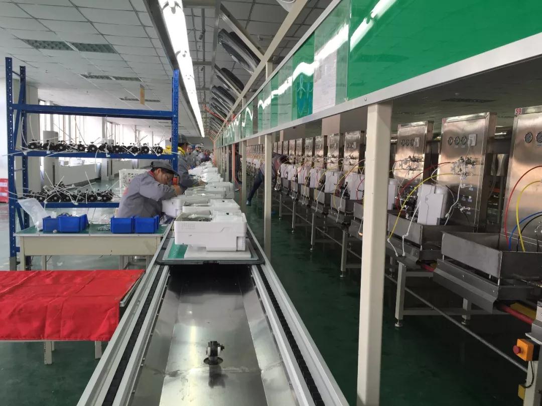 無塵車間內(nèi)配備的國內(nèi)先進(jìn)的凈水機(jī)自動(dòng)化生產(chǎn)線正處于工作狀態(tài),可編程控制器(PLC)自動(dòng)、轉(zhuǎn)向、垂直升降輸送產(chǎn)品;自動(dòng)倍速鏈輸送,節(jié)拍控制,大幅提高了生產(chǎn)效率。榮事達(dá)凈水器生產(chǎn)線日產(chǎn)能是一般生產(chǎn)線的3到4倍,在高速運(yùn)作的生產(chǎn)線上,工人們或迅速熟練地安裝產(chǎn)品零配件;或聚精會(huì)神地檢查儀表數(shù)值;或仔細(xì)認(rèn)真地核查包裝箱內(nèi)物品是否齊全,在注重生產(chǎn)效率的同時(shí)嚴(yán)把產(chǎn)品質(zhì)量關(guān),對每一個(gè)生產(chǎn)環(huán)節(jié)的操作都一絲不茍,力求實(shí)現(xiàn)產(chǎn)能、品質(zhì)的雙豐收。