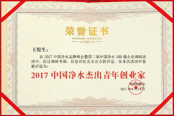 - 熱烈祝賀榮事達(dá)水工業(yè)公司總經(jīng)理王悅生獲評(píng)“2017年中國(guó)凈水杰出青年創(chuàng)業(yè)家”