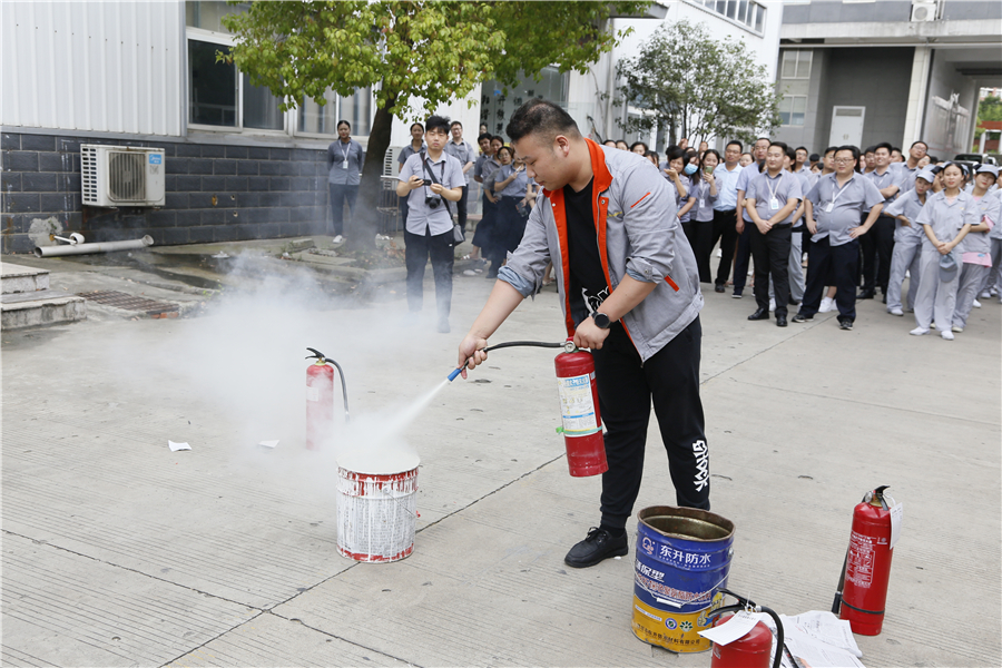 滅火演習現場,相關人員就消防器材使用規范,進行了詳細的講解與演練。在實操前先由消防指導員進行了滅火器的使用方法、 步驟和滅火姿勢等教學,然后安排員工現場實操滅火。集團各部門員工爭先拿起滅火器按照步驟進行實操滅火,反應熱烈。