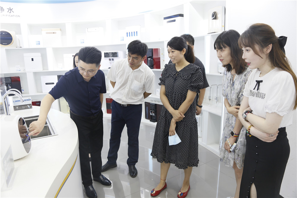 一行領(lǐng)導先后參觀了榮事達智能化生產(chǎn)車間和智慧水世界展廳,了解榮事達企業(yè)綜合實力及十大水處理產(chǎn)業(yè)具體發(fā)展狀況,現(xiàn)場體驗了企業(yè)最新研發(fā)定制產(chǎn)品與自主開發(fā)的物聯(lián)網(wǎng)校園智慧管理系統(tǒng),并為榮事達行業(yè)領(lǐng)先的技術(shù)實力點贊。