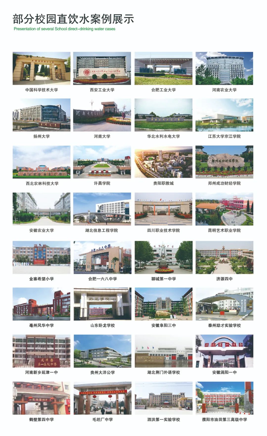 榮事達水工業(yè)先后承建了中國科學技術大學、河南大學、西北農林科技大學、江蘇省丹陽市第五中學等3000多所學校的直飲水工程,‘喝’護千萬師生飲水健康。