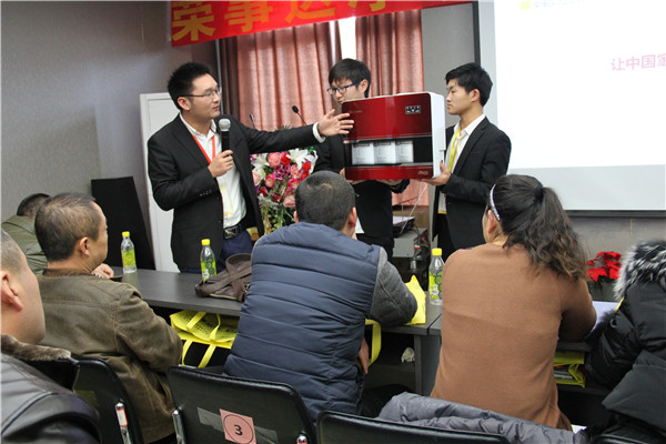 產(chǎn)品是終端營銷的基石,榮事達(dá)推出箱體LED純水機(jī),渠道發(fā)展部劉總對產(chǎn)品進(jìn)行了講解。外觀上,產(chǎn)品以大紅色為主色調(diào),弧形立式設(shè)計(jì)更精致美觀上檔次。功能上,產(chǎn)品增壓、自吸可一步到位,有效攻克水壓不足、不穩(wěn)問題;配置先進(jìn)RO反滲透膜,五級過濾系統(tǒng),凈化功能卓越;LED智能顯示,運(yùn)行狀態(tài)一目了然等。此次會(huì)議,公司還推出高端智能凈水機(jī),滿足消費(fèi)者的不同需求。